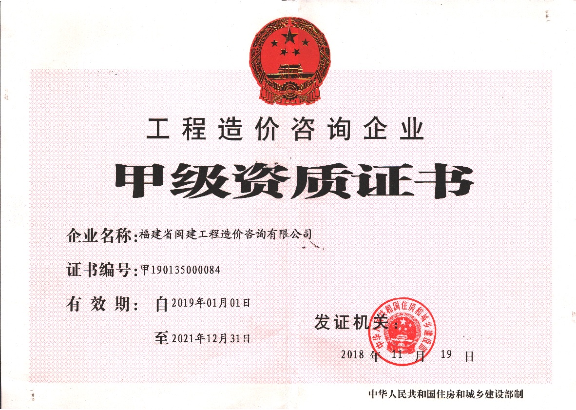 福建省閩建工程造價咨詢有限公司成立于1993年,原隸屬福建省建設委員會,2001年脫鉤改制為有限責任公司,公司注冊資本1200萬元,是一家具有甲級工程招標代理資質(zhì)(證書編號:F135000429)、甲級工程造價咨詢資質(zhì)(證書編號:甲150135000084)、政府采購代理資質(zhì)、預備級中央投資項目招標代理機構(gòu)資質(zhì)(證書編號:ZYTZ-C2013239)、丙級工程資質(zhì)(證書編號:工咨丙11520160008)的綜合性工程咨詢服務單位。能承擔各類建設項目的工程招標代理、工程造價咨詢...